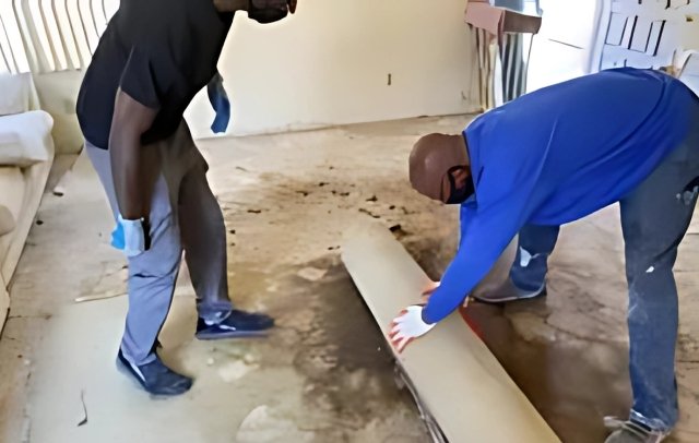 We assess the carpet condition and underlying surfaces, identifying odor sources or adhesive issues.